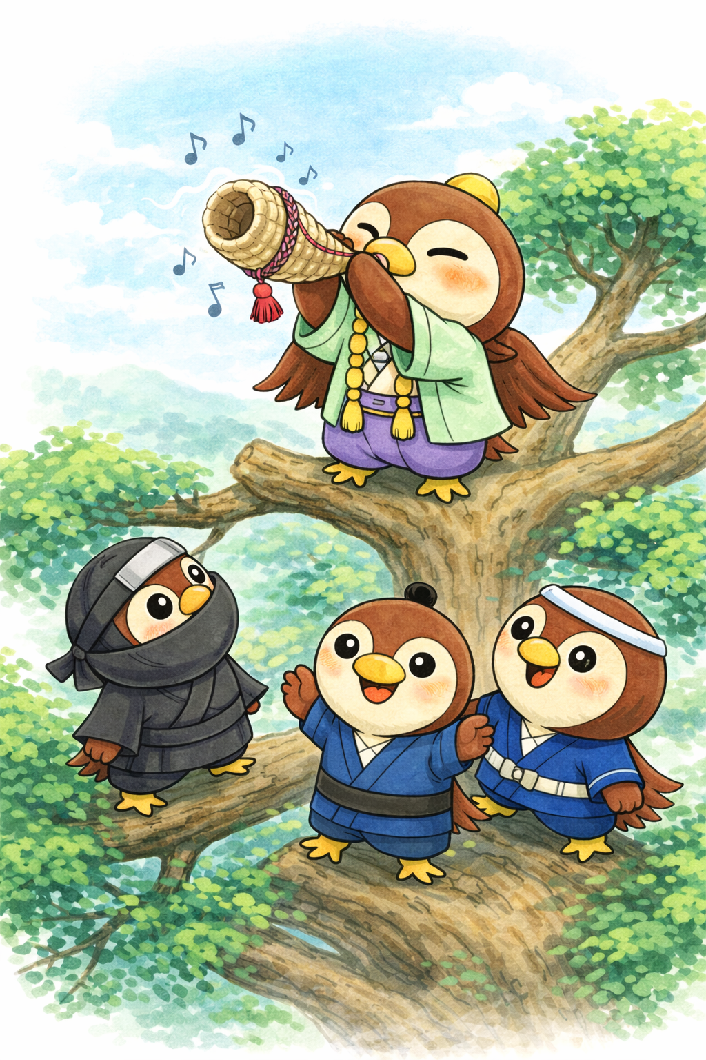 やがて四羽は、大きな木のまわりに自然と集まりました。