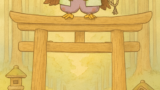 枝にちょこんと立っているのは、小さな山伏天狗――三寸坊。