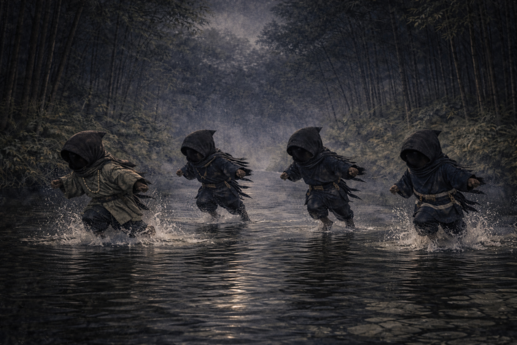 次の瞬間、竹林の間で突然、鬼ごっこが始まった。